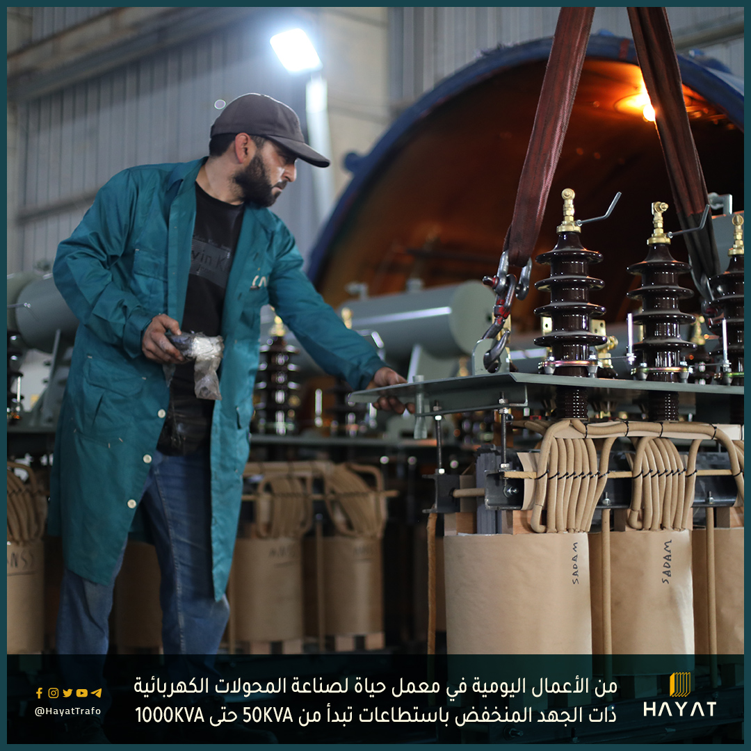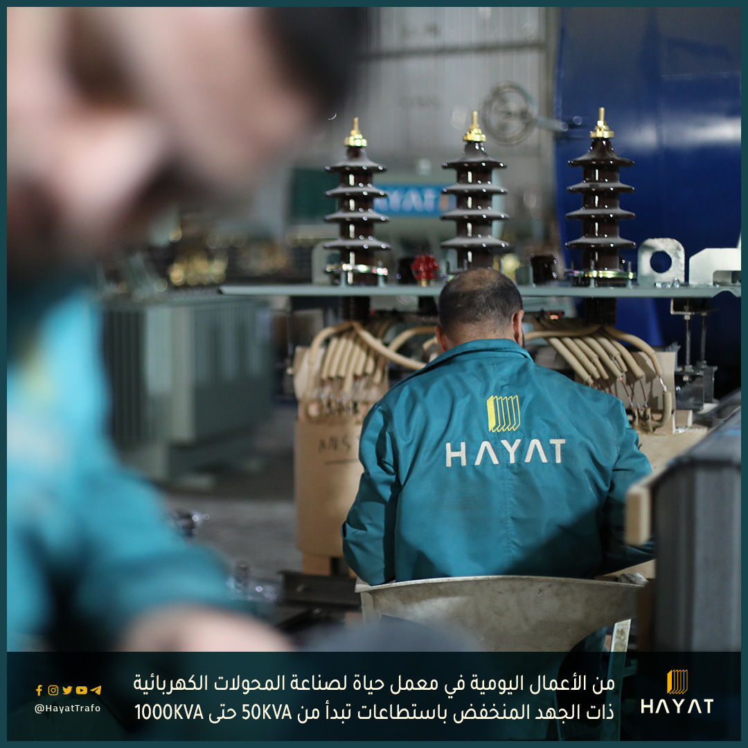 من الأعمال اليومية في معمل محولات حياة Hayat لصناعة وصيانة المحولات الكهربائية ذات الجهد المنخفض باستطاعات تبد...