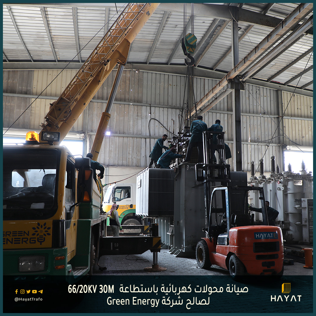 من الأعمال اليومية في معمل محولات حياة Hayat ، صيانة محولات كهربائية باستطاعة 66/20KV 30M لصالح شركة الكهرباء Green Energy...
